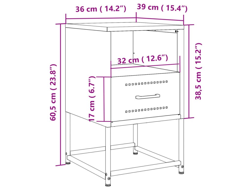 - Ľahko sa čistí: Oceľový nočný stolík je odolný voči vlhkosti a ľahko sa čistí vlhkou handričkou.