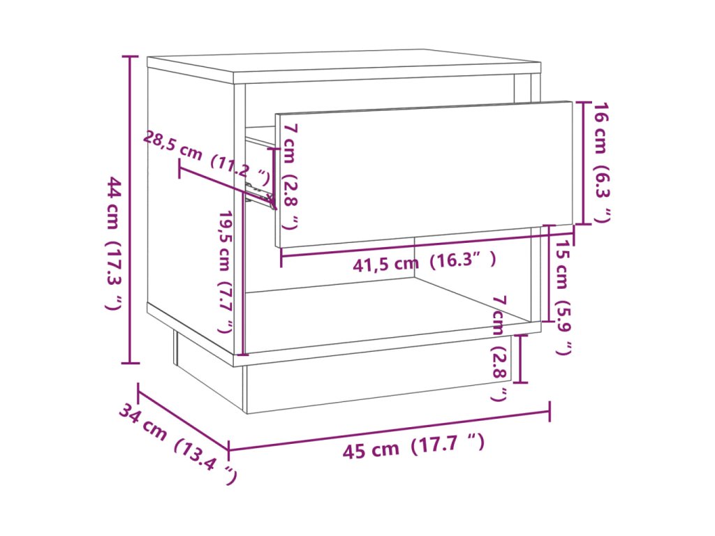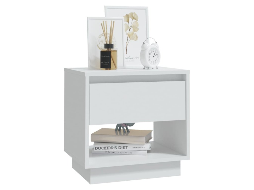 Nočný stolík má pevnú a odolnú konštrukciu, ktorá mu zaručuje dlhodobé používanie. Zásuvka a otvorená priehradka poskytujú dostatok úložného priestoru, aby ste mali drobné predmety dobre usporiadané a na dosah. Robustná horná časť je ideálna na umiestnenie lampy, hodín a podobne.