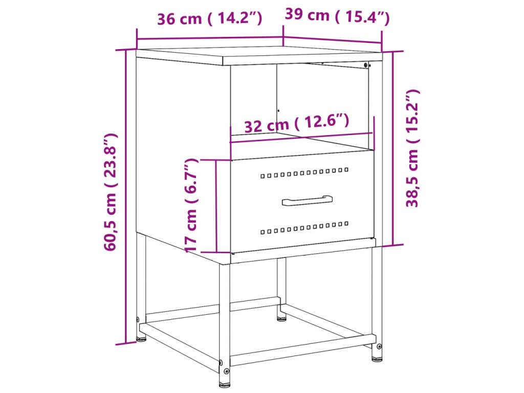 - Ľahko sa čistí: Oceľový nočný stolík je odolný voči vlhkosti a ľahko sa čistí vlhkou handričkou.