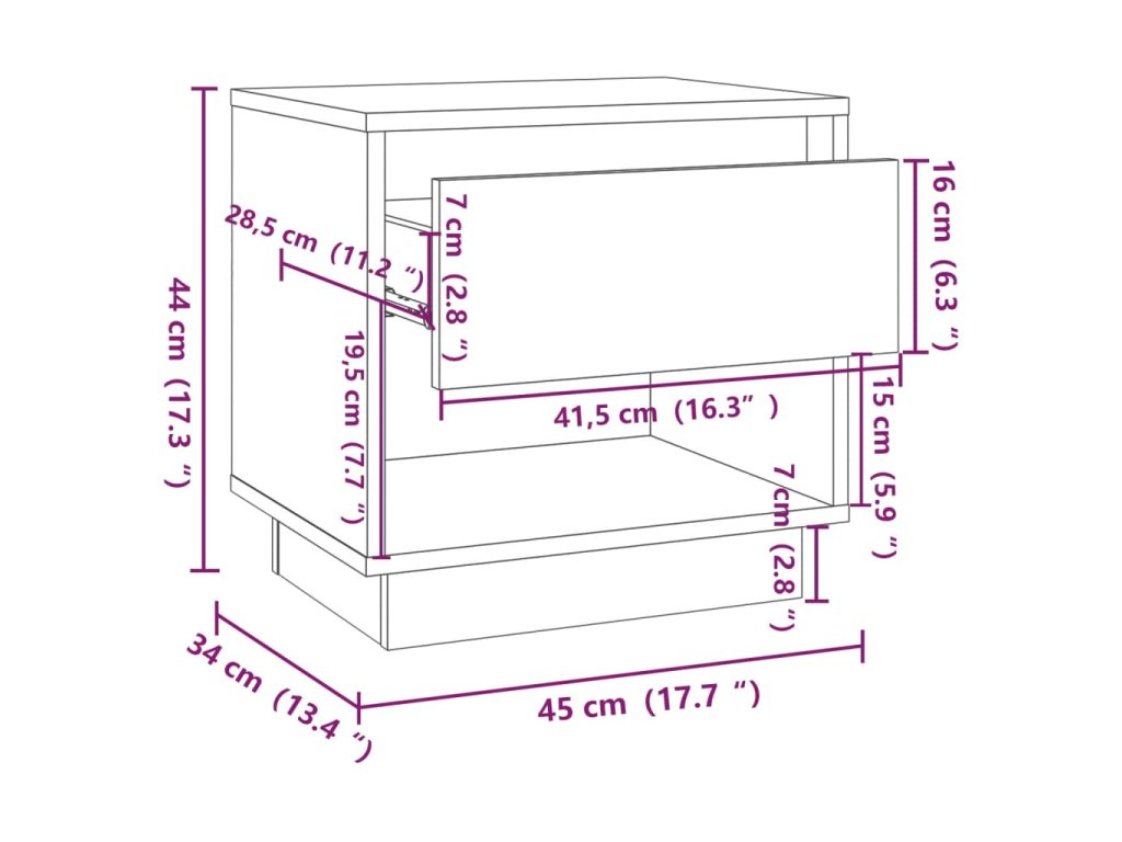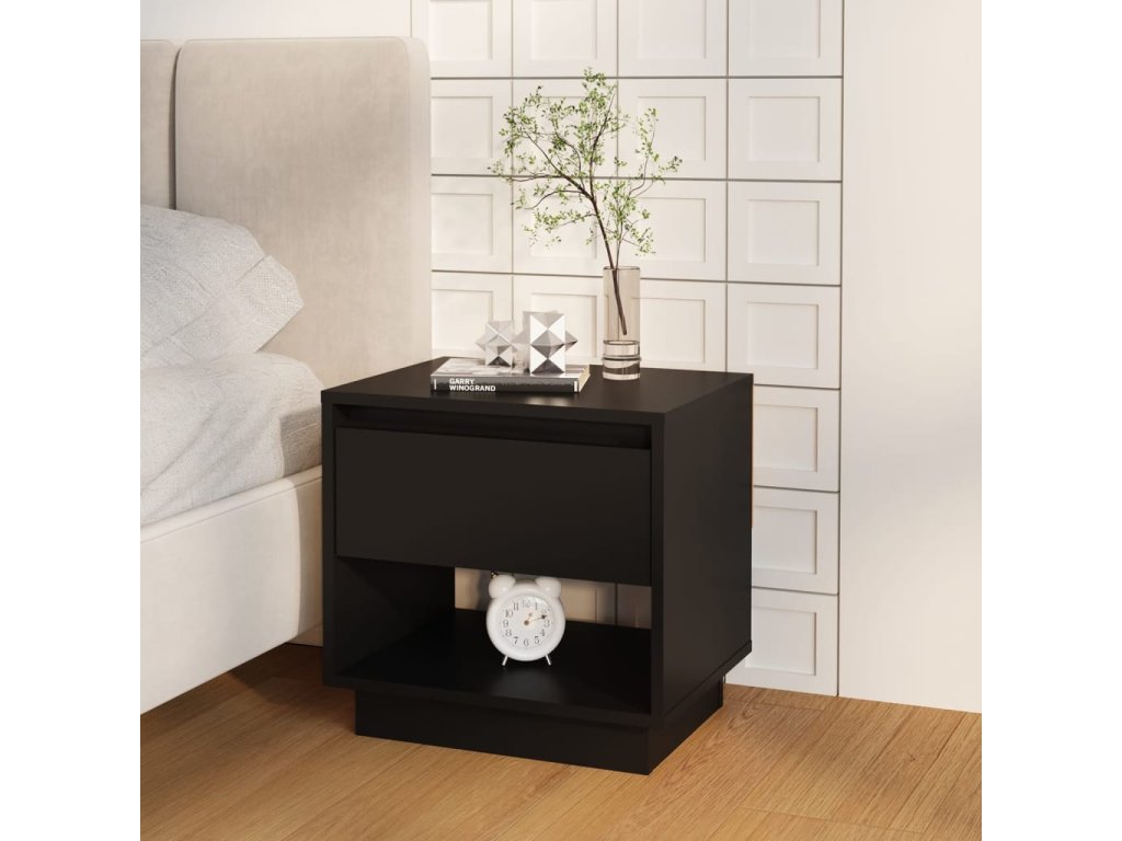 Nočný stolík má pevnú a odolnú konštrukciu, ktorá mu zaručuje dlhodobé používanie. Zásuvka a otvorená priehradka poskytujú dostatok úložného priestoru, aby ste mali drobné predmety dobre usporiadané a na dosah. Robustná horná časť je ideálna na umiestnenie lampy, hodín a podobne.