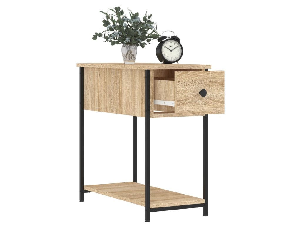 - Trvácny materiál: Spracované drevo je mimoriadne kvalitné s hladkým povrchom a vyznačuje sa pevnosťou, stabilitou a odolnosťou proti vlhkosti. Bočný stolík je vyrobený zo spracovaného dreva a ľahko sa čistí vlhkou handričkou.