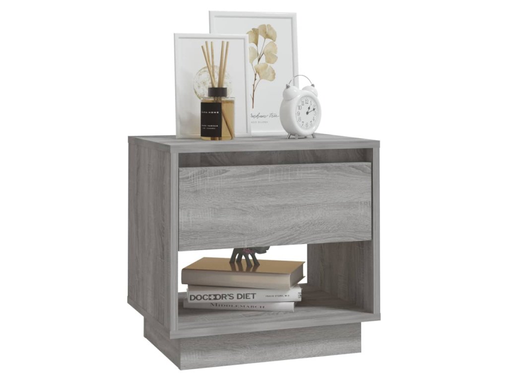 Nočný stolík má pevnú a odolnú konštrukciu, ktorá mu zaručuje dlhodobé používanie. Zásuvka a otvorená priehradka poskytujú dostatok úložného priestoru, aby ste mali drobné predmety dobre usporiadané a na dosah. Robustná horná časť je ideálna na umiestnenie lampy, hodín a podobne.