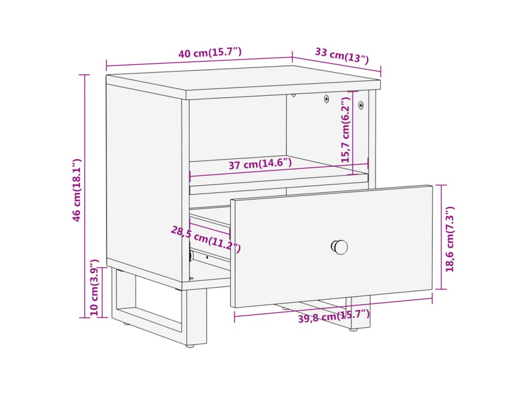 - Dostatok úložného priestoru: Nočný stolík je navrhnutý s 1 zásuvkou a 1 priečinkom, aby ste mali svoje veci usporiadané a na dosah ruky.