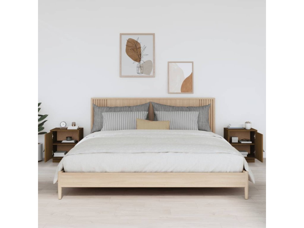 vidaXL Nočné stolíky 2 ks medovo-hnedé 40x34x45 cm borovicový masív
