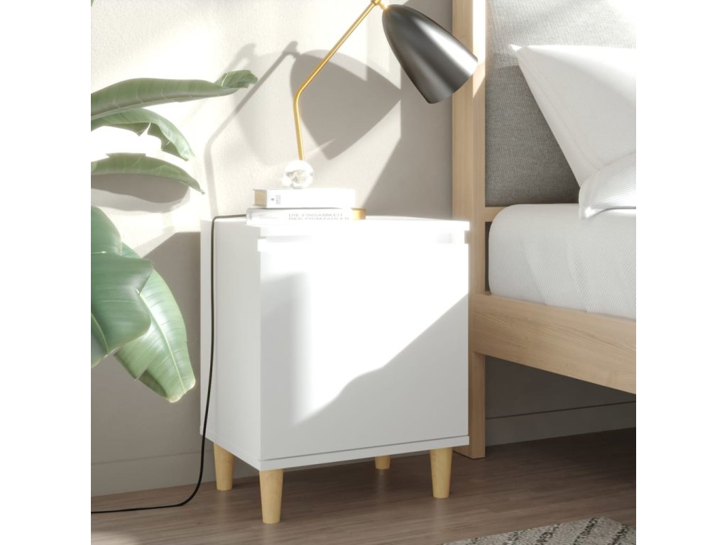 vidaXL Nočné stolíky 2 ks nohy z masívneho dreva biele 40x30x50 cm