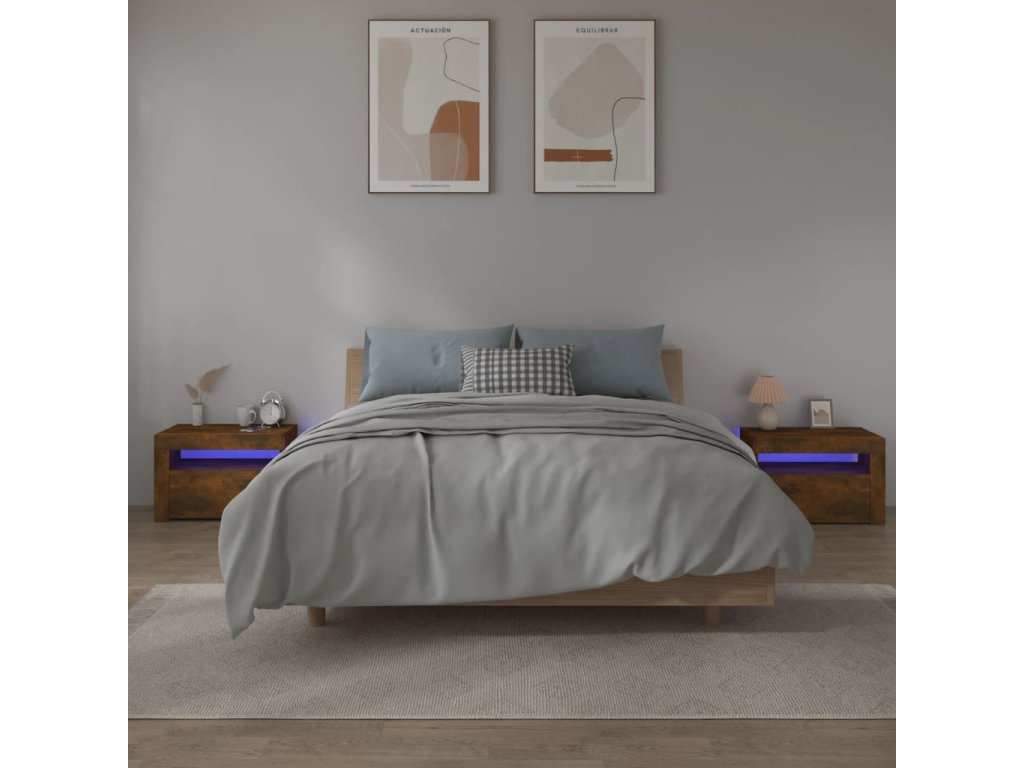 vidaXL Nočné stolíky 2 ks s LED, tmavý dub 60x35x40 cm