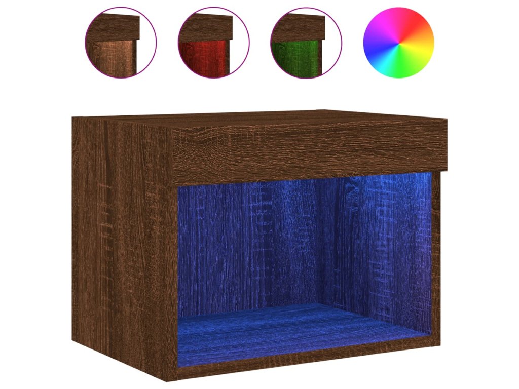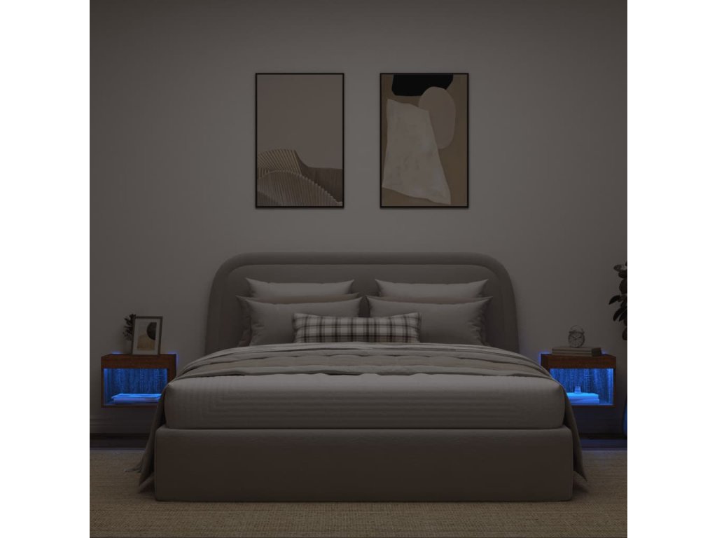 vidaXL Nočné stolíky s LED svetlami nástenné 2 ks hnedý dub