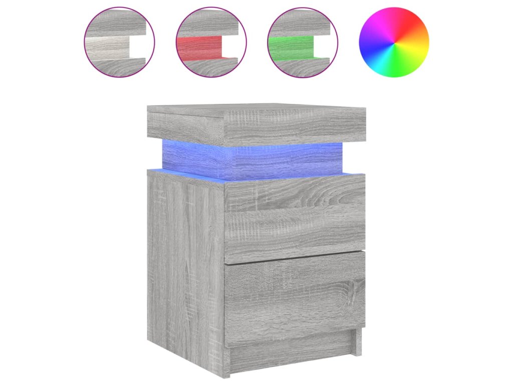 vidaXL Nočné stolíky s LED svetlami sivé sonoma 35x39x55 cm