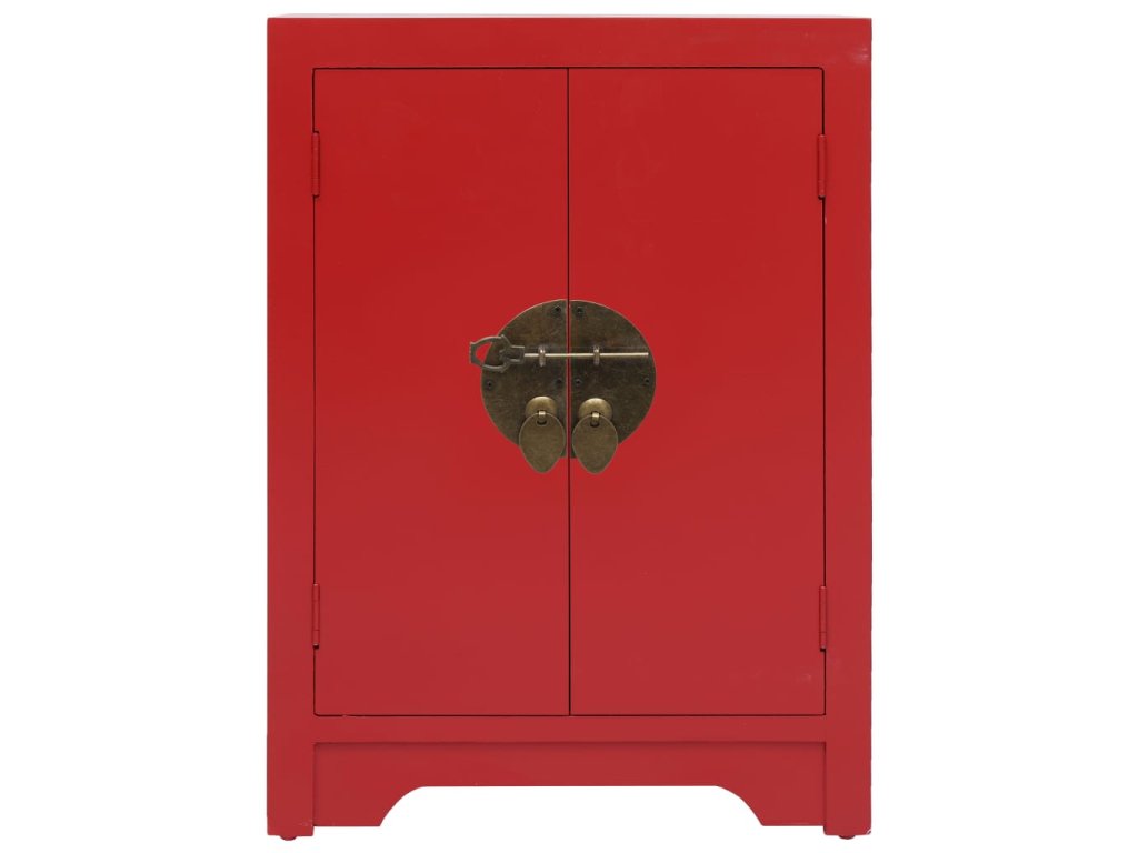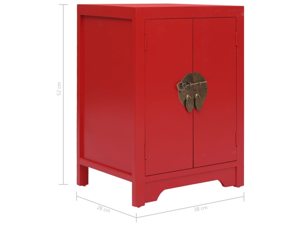 Nočný stolík je vyrobený z dreva paulovnie a MDF, a preto je trvácny a pevný. Nádherné zlaté zámky v čínskom štýle stolíku dodávajú nadčasovú eleganciu. Nočný stolík poskytuje veľký úložný priestor s 2 dvierkami. Pevná doska je ako stvorená na vystavenie ozdobných predmetov, rámikov s fotkami alebo kvetov v kvetináči. Dá sa ľahko očistiť navlhčenou handričkou. Príručná skrinka sa jednoducho montuje.