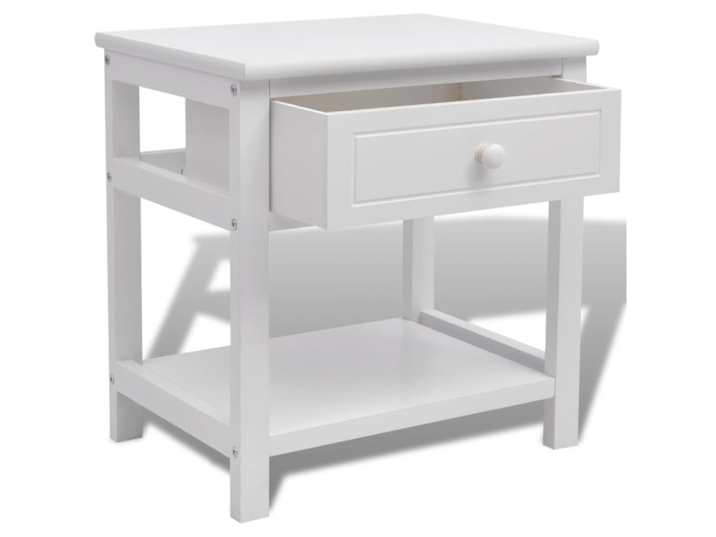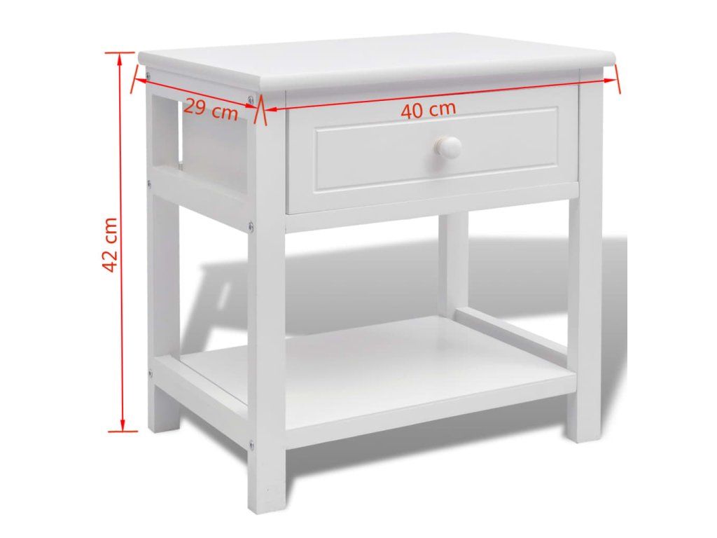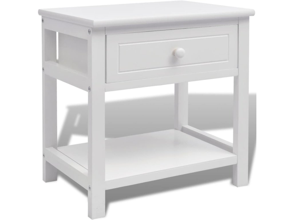 Tento kompaktný nočný stolík má hladko otvárajúcu sa zásuvku, ktorá poskytuje dostatok priestoru na uskladnenie menších predmetov, ktoré potrebujete mať odložené a na dosah. Polička pod zásuvkou poskytuje ďalší úložný priestor. Nočný stolík je vyrobeny z vysoko kvalitných materiálov, je odolný a ľahko sa čistí.
