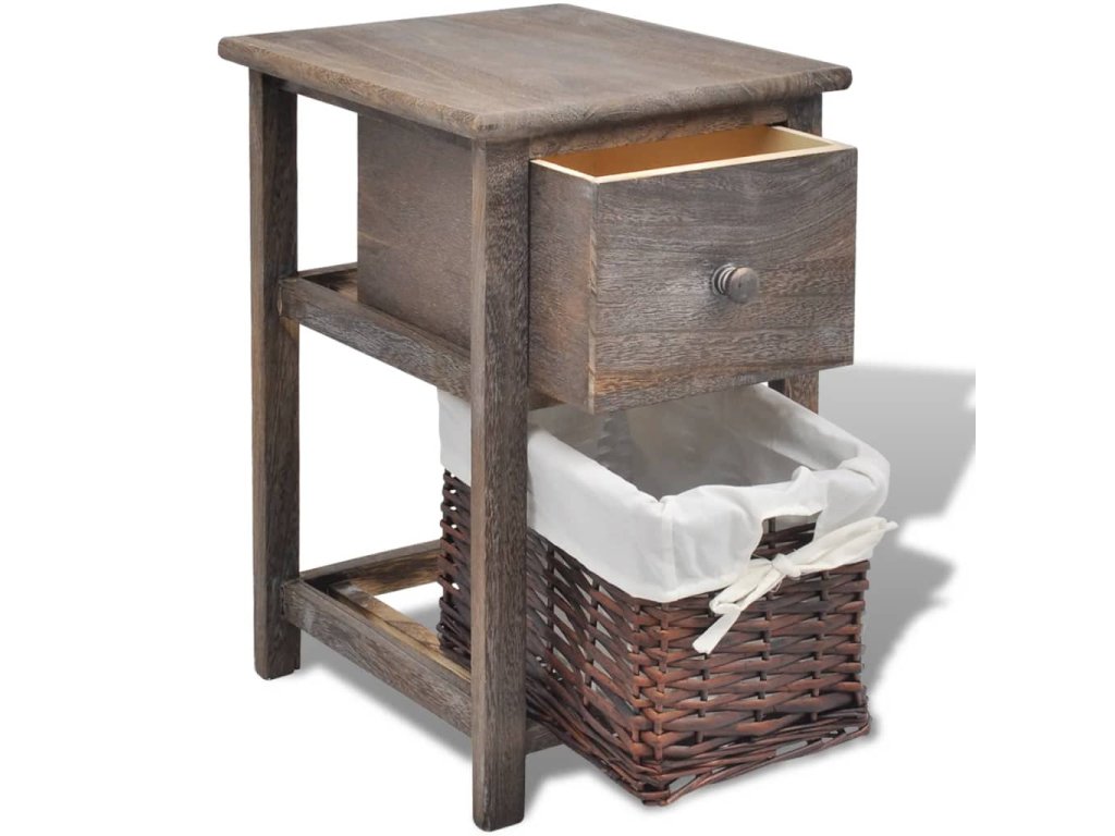 Táto kompaktná skrinka má zásuvku, ktorá sa ľahko vysúva a zasúva a poskytuje dostatok miesta na odkladanie drobností, ktoré chcete mať vždy poruke. Pod zásuvkou sa nachádza odnímateľný prútený košík, ktorý ponúka dodatočný úložný priestor. Látkova výstelka košíka sa dá vybrať a oprať.