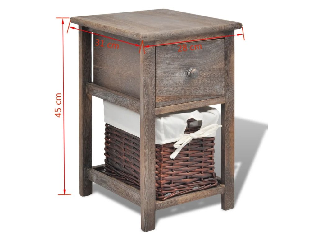 Vneste do svojho príbytku nádych rustikálnej atmosféry s týmto štýlovým nočným stolíkom! Dá sa používať aj ako stolík na telefón, príručná skrinka, malá skrinka, skrinka so zásuvkami, skladovacia skrinka, skrinka do spálne, odkladací stolík či odkladacia skrinka a podobne.