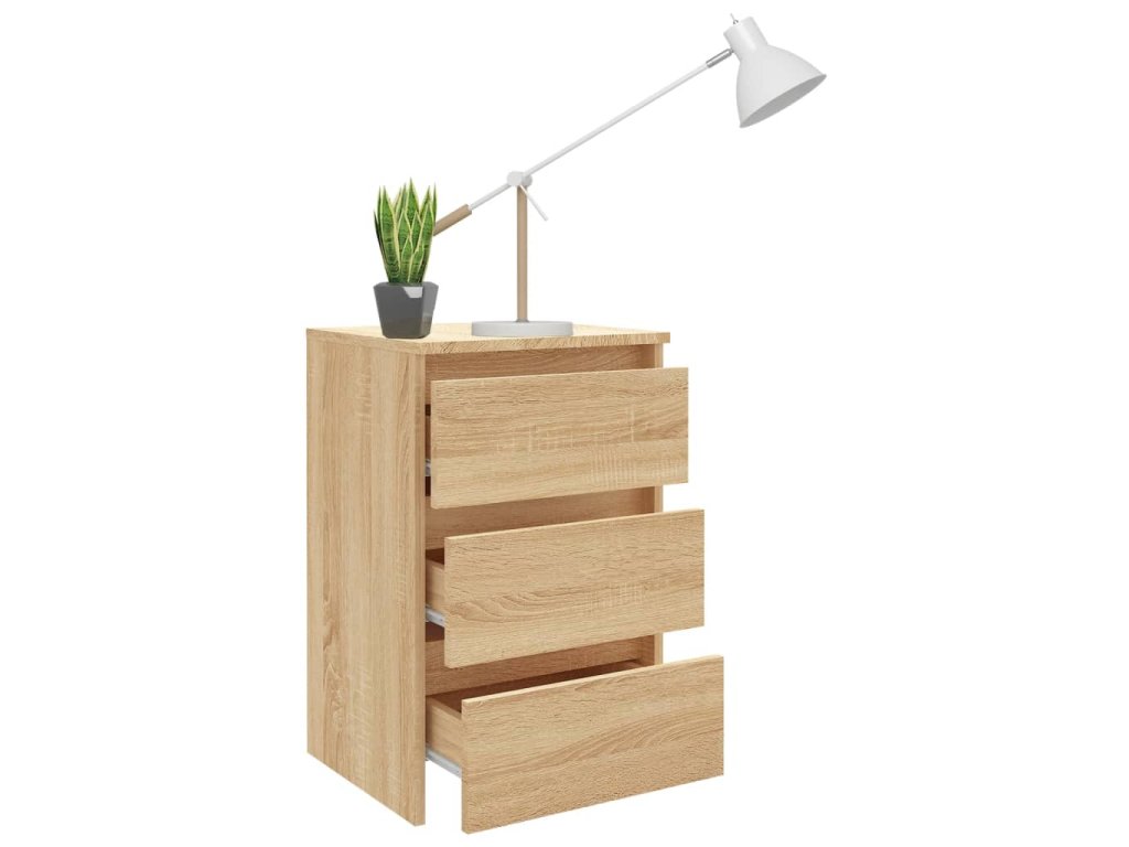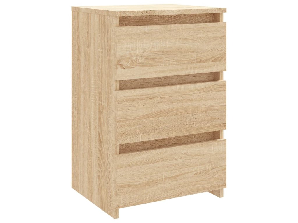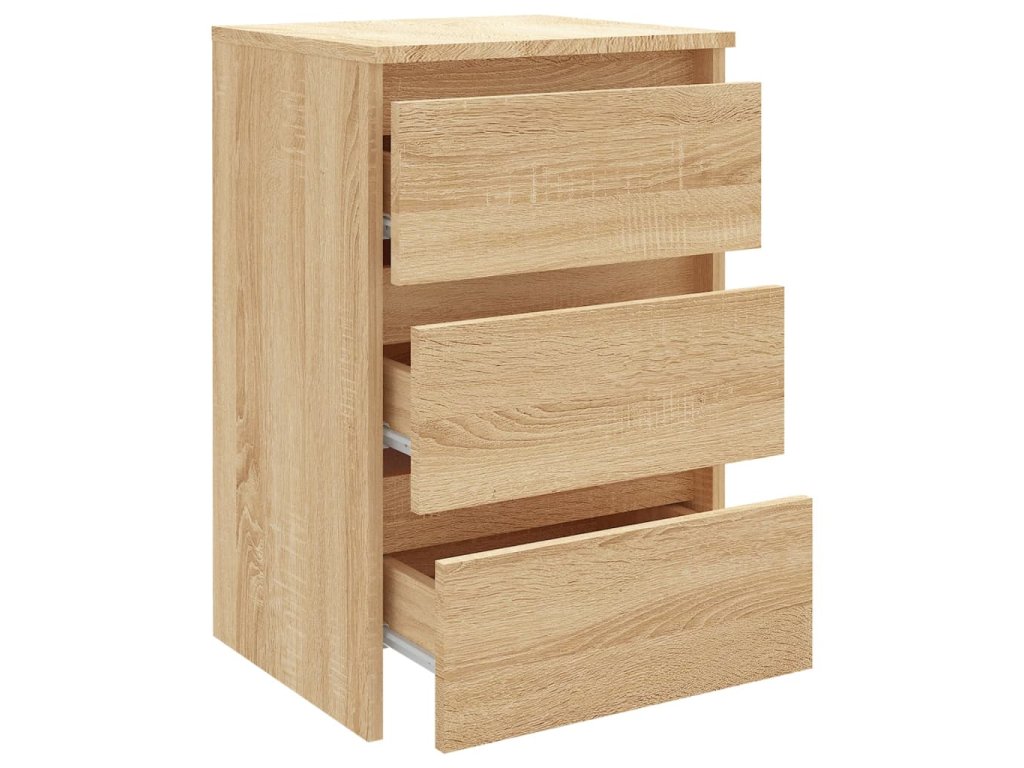 Vďaka robustnej konštrukcii je príručná skrinka veľmi trvácna. Nočný stolík navyše obsahuje tri zásuvky, ktoré ponúkajú dostatok úložného priestoru na prehľadné odkladanie rôznych predmetov, ktoré tak budete mať vždy poruke. Okrem toho sa dá ľahko očistiť navlhčenou handričkou.