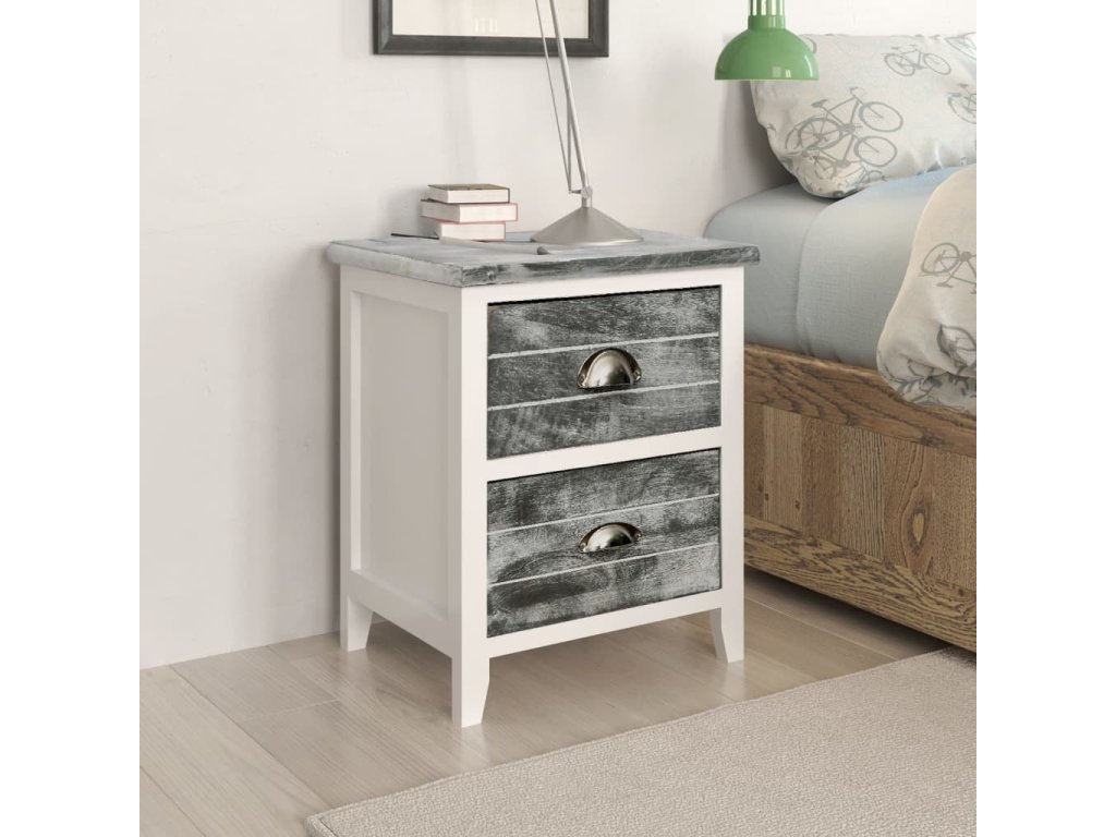 vidaXL Nočný stolík, sivo biely 38x28x45 cm, drevo paulovnie