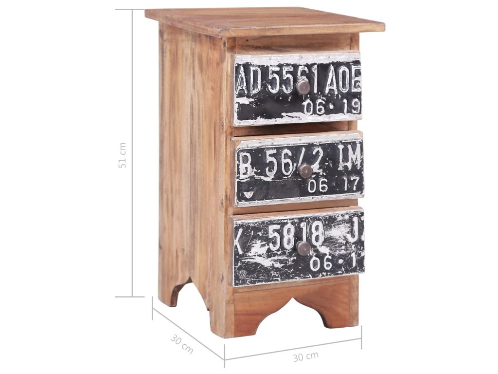 Táto masívna skrinka je vyrobená z mahagónového masívu, a tak je mimoriadne trvácna a robustná. Mahagón je tropické tvrdé drevo, ktoré vyniká svojou krásou, trvácnosťou a farbou. Špeciálne remeselné opracovanie dodáva tomuto výrobku hrejivý a autentický vintage vzhľad. Výrobok je kompletne ručne vyrobený a každý krok výrobného procesu sa vykonáva s najväčšou starostlivosťou, či už je to leštenie, natieranie alebo lakovanie. Skrinka s 3 zásuvkami poskytuje množstvo úložného priestoru na prehľadné odkladanie rôznych predmetov. Nočný stolík sa navyše dá ľahko očistiť suchou handričkou.