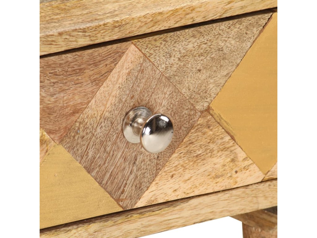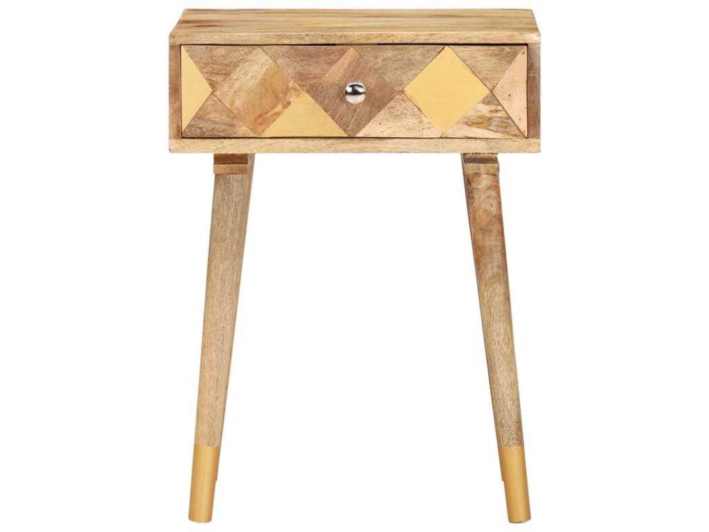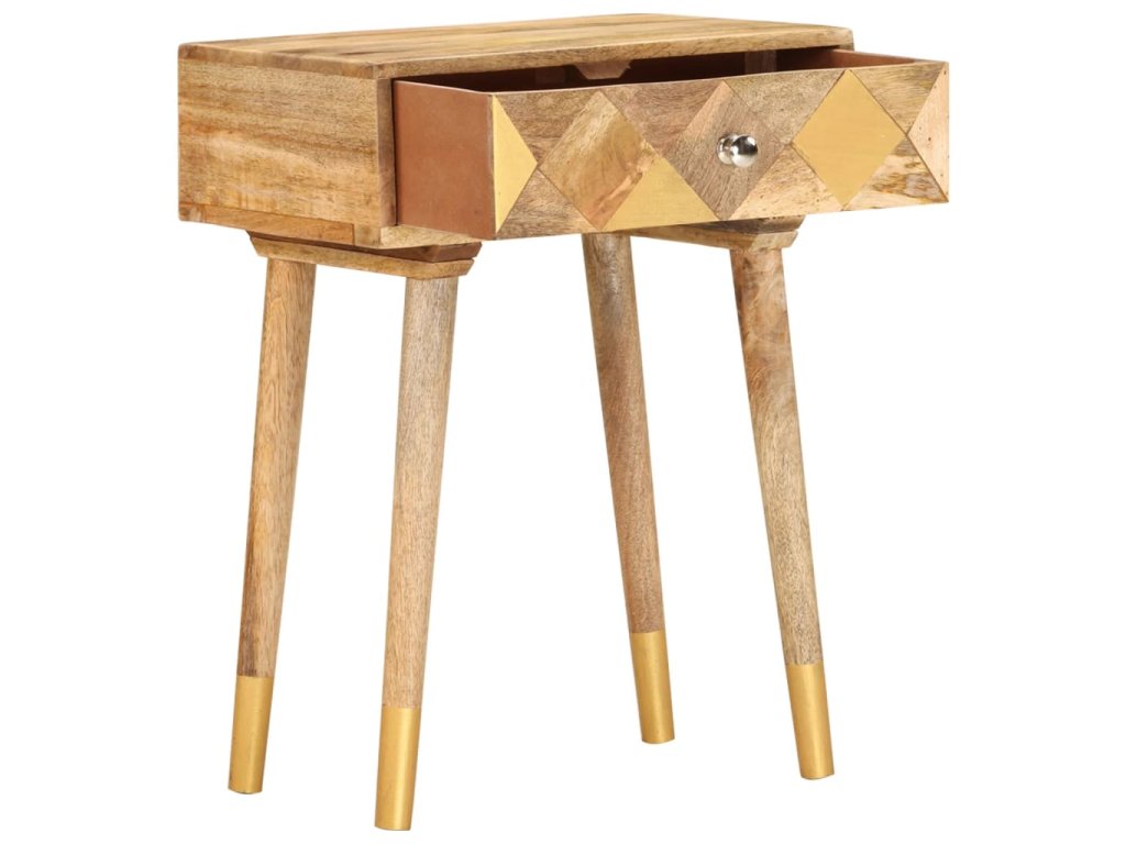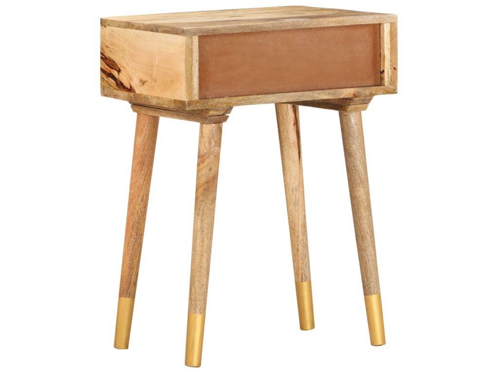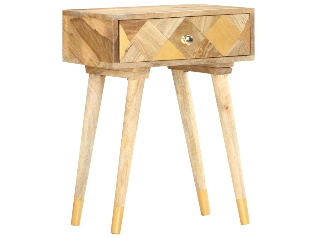 Nočný stolík je vyrobený z mangového masívu, ktorý bol leštený, natieraný a lakovaný a táto krásna povrchová úprava mu dodáva rafinovaný vzhľad. Mangové drevo je husté a robustné tvrdé drevo, ktoré má na svojom povrchu krásne hnedé alebo zlatisté prúžky a kresby. Zásuvka poskytuje množstvo úložného priestoru na odkladanie menších predmetov, ktoré tak budete mať vždy poruke.