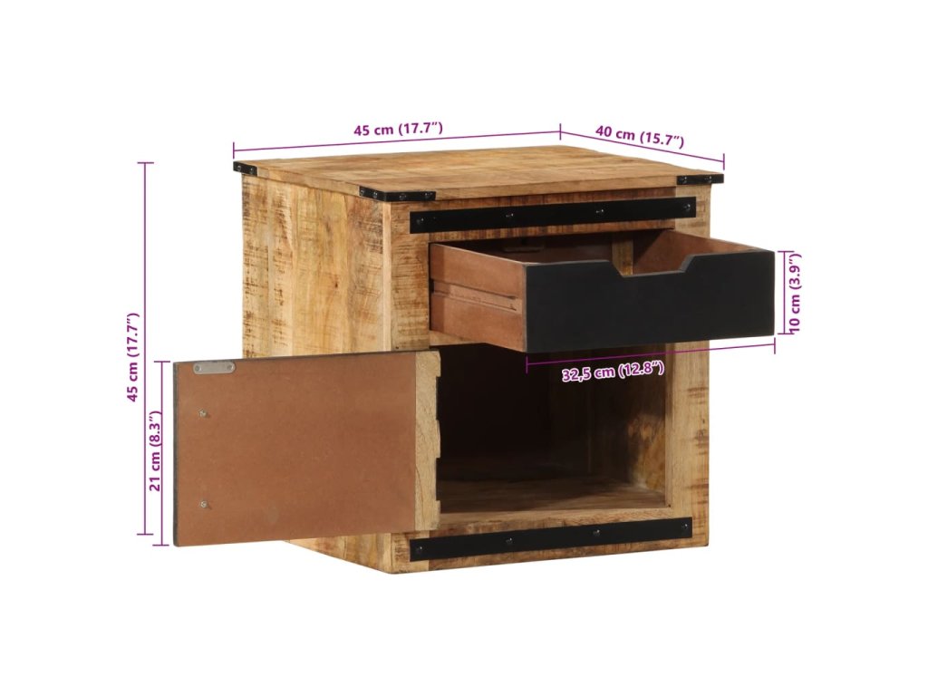 - Trvácny materiál: Mangový masív je pevné drevo tropického listnatého stromu, z ktorého sa vyrába robustný nábytok. Vďaka krásnej textúre dreva je každý kus nábytku trochu odlišný od ostatných. Tento nočný stolík je vyrobený z mangového masívu, vďaka čomu je robustný a stabilný.