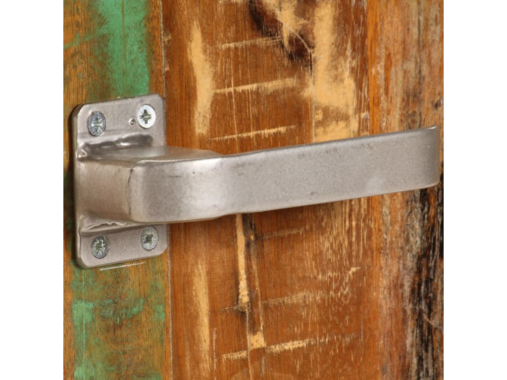 Ńočný stolík je vyrobený z recyklovaného masívu, ktorý pochádza z trámov, podláh a nosníkov zo starých zbúraných stavieb a pozostáva z rôznych typov dreva, ako napríklad borovicového, tíkového, bukového, dubového, cédrového, mangového či akáciového dreva. Recyklované drevo sa preto vyznačuje vlastnosťami týchto typov dreva. Recyklované drevo je staré, zvetrané a usušené, a preto sa nezmršťuje ani neohýba. Nočný stolík je kompletne ručne vyrobený a vďaka krásnej textúre dreva je každý kus nábytku jedinečný a trochu odlišný od ostatných. Kovové prvky umocňujú industriálny vzhľad skrinky. Skrinka poskytuje množstvo úložného priestoru na knihy, zápisníky, perá či iné drobnosti. Skrinka je vybavená 4 otočnými kolieskami, a tak sa dá jednoducho premiestniť.