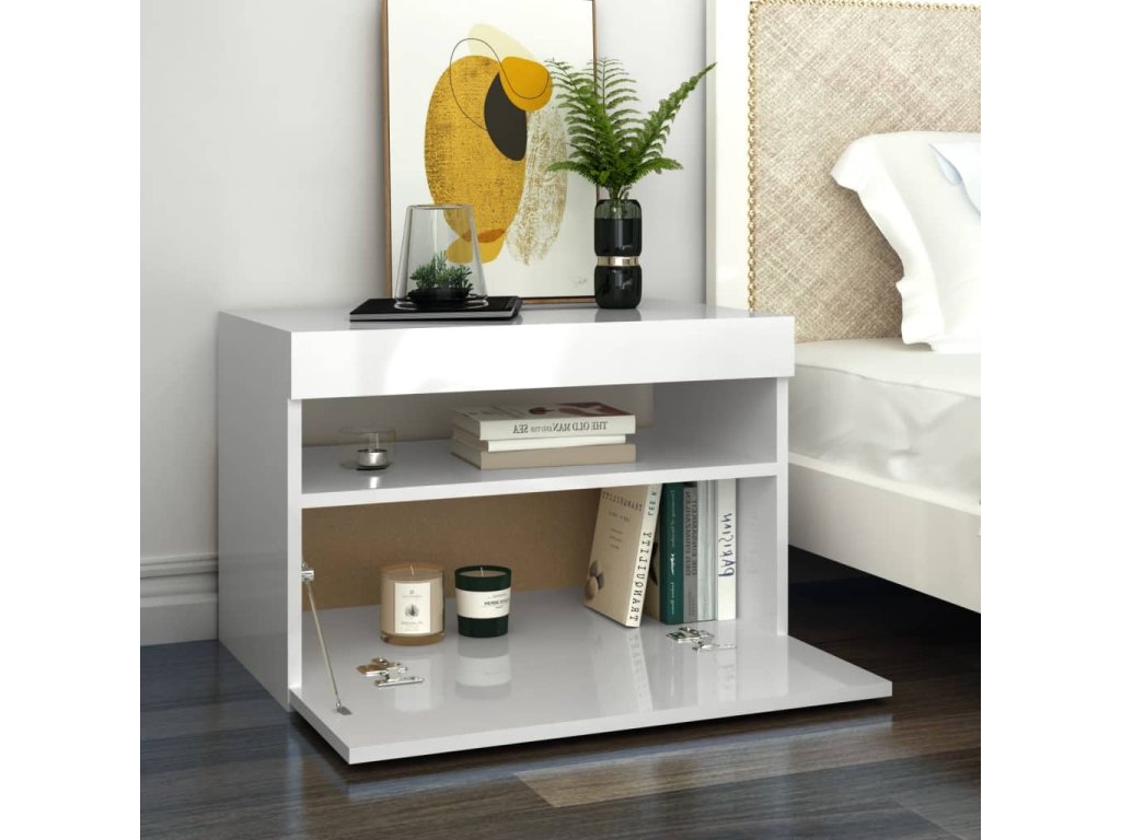 vidaXL Nočný stolík a LED svetlá 2 ks lesklý biely 60x35x40 cm