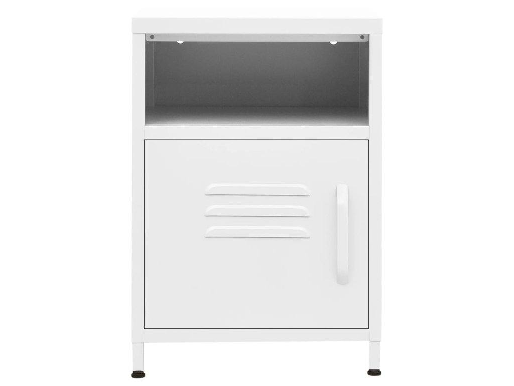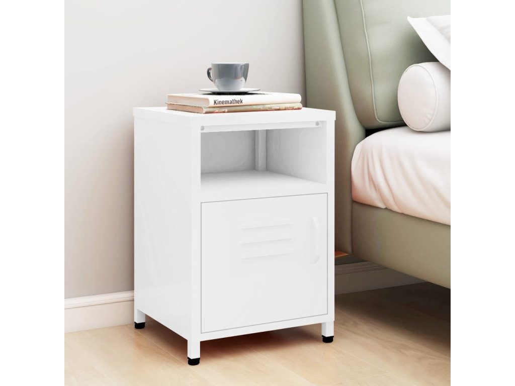 Nočný stolík je vyrobený z ocele, vďaka čomu je odolný a ľahko sa čistí. Stolík má 1 otvorenú policu a 1 dvierka, ktoré poskytujú dostatok úložného priestoru na uloženie vašich DVD, multimediálnych zariadení, kníh a iných menších predmetov dobre organizovaných a na dosah ruky. Na spodnej strane sú vyrovnávače, pomocou ktorých si výšku nastavíte podľa svojich potrieb.