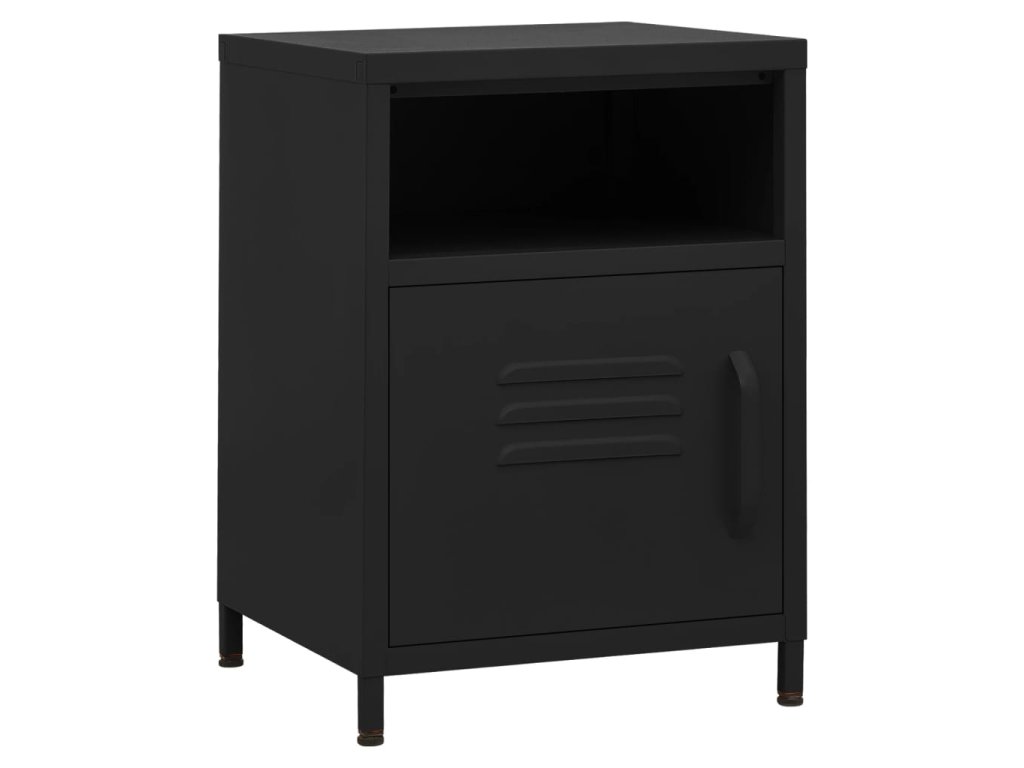 Nočný stolík je vyrobený z ocele, vďaka čomu je odolný a ľahko sa čistí. Stolík má 1 otvorenú policu a 1 dvierka, ktoré poskytujú dostatok úložného priestoru na uloženie vašich DVD, multimediálnych zariadení, kníh a iných menších predmetov dobre organizovaných a na dosah ruky. Na spodnej strane sú vyrovnávače, pomocou ktorých si výšku nastavíte podľa svojich potrieb.