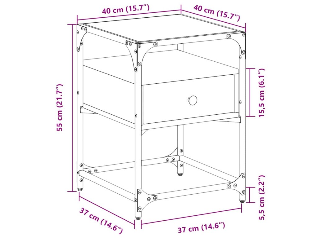 - Rozmery: 40 x 40 x 55 cm (D x Š x V)