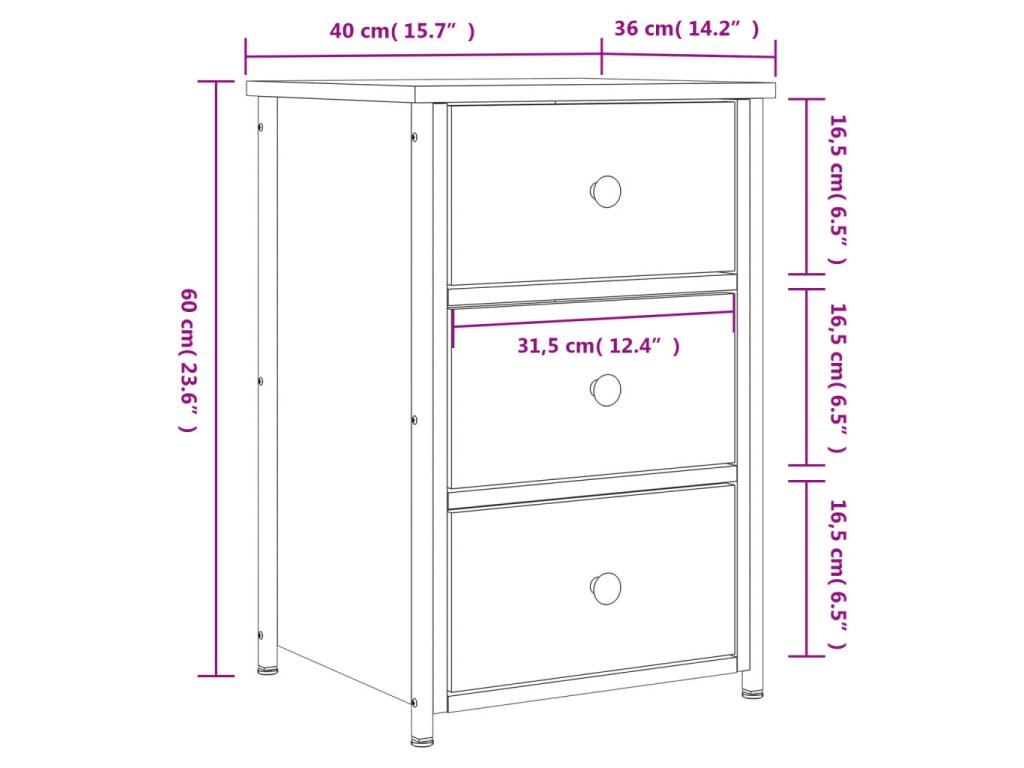 - Rozmery: 40 x 36 x 60 cm (D x Š x V)