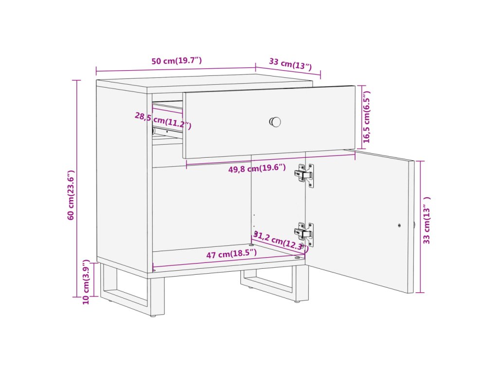 vidaXL Nočný stolík hnedo-čierny 50x33x60 cm masívne mango