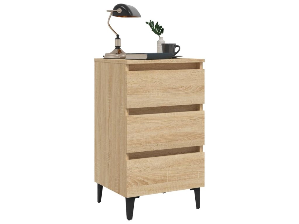 vidaXL Nočný stolík kovové nohy dub sonoma 40x35x69 cm