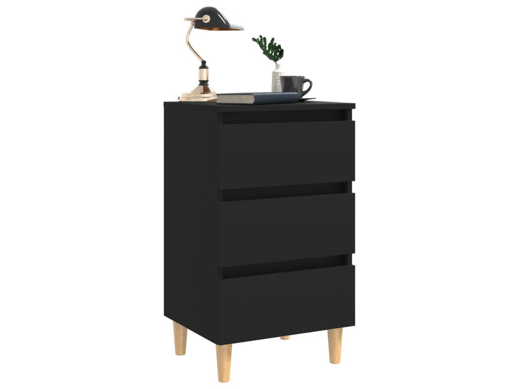 vidaXL Nočný stolík nohy z masívneho dreva čierny 40x35x69 cm