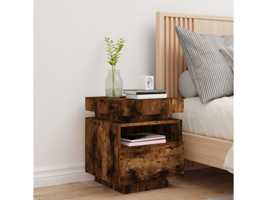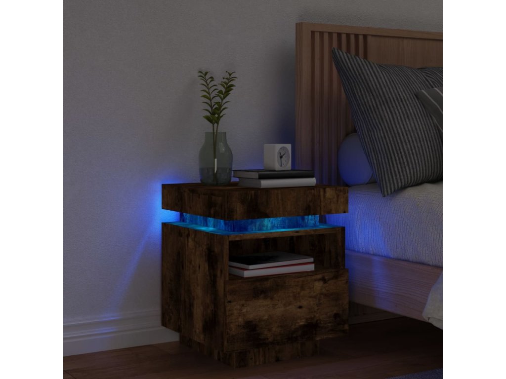 vidaXL Nočný stolík s LED svetlami dymový dub 40x39x48,5 cm