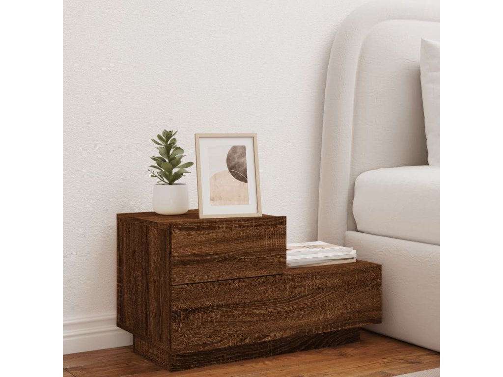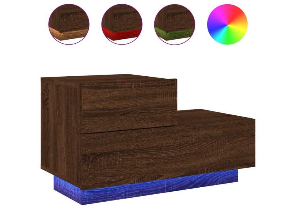 vidaXL Nočný stolík s LED svetlami hnedý dub 70x36x40,5 cm