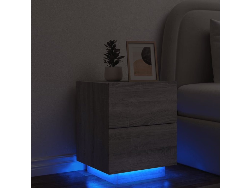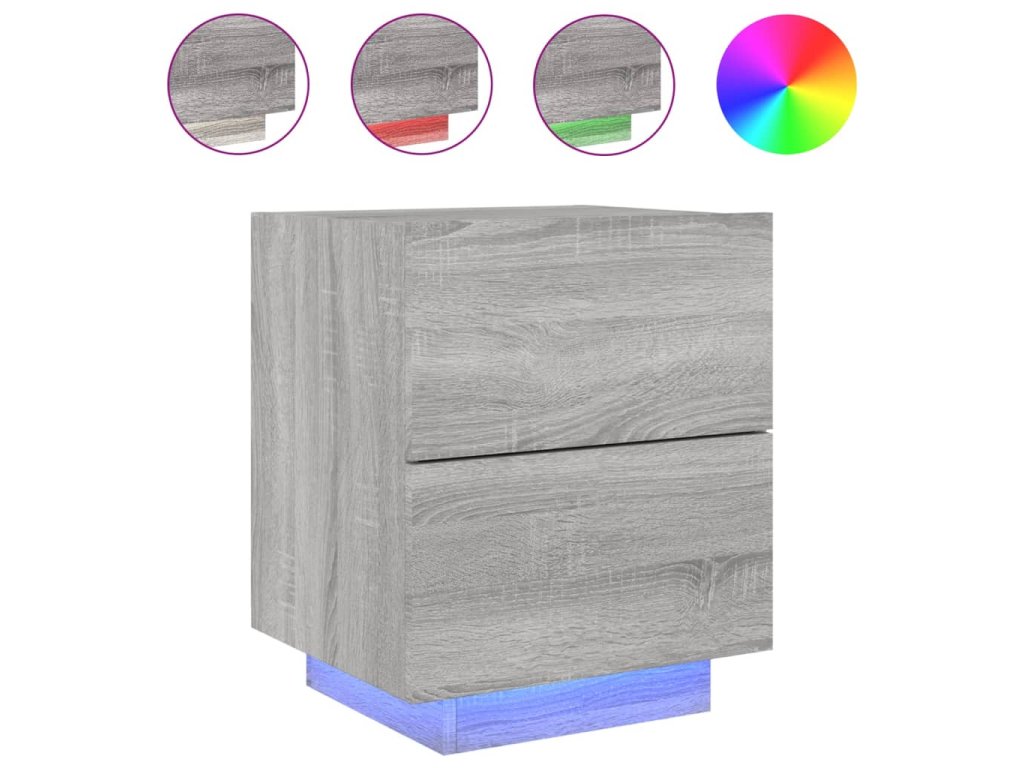 vidaXL Nočný stolík s LED svetlami sivý dub sonoma kompozitné drevo