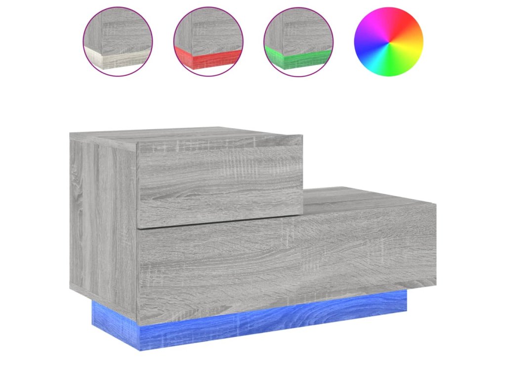 vidaXL Nočný stolík s LED svetlami sivý sonoma 70x36x40,5 cm