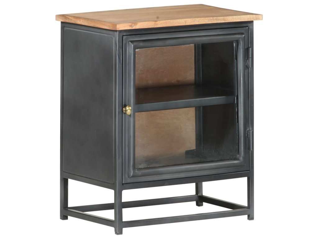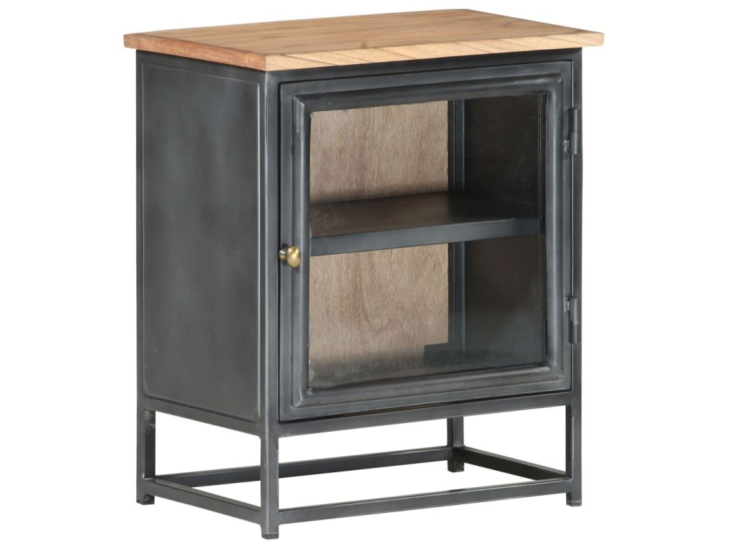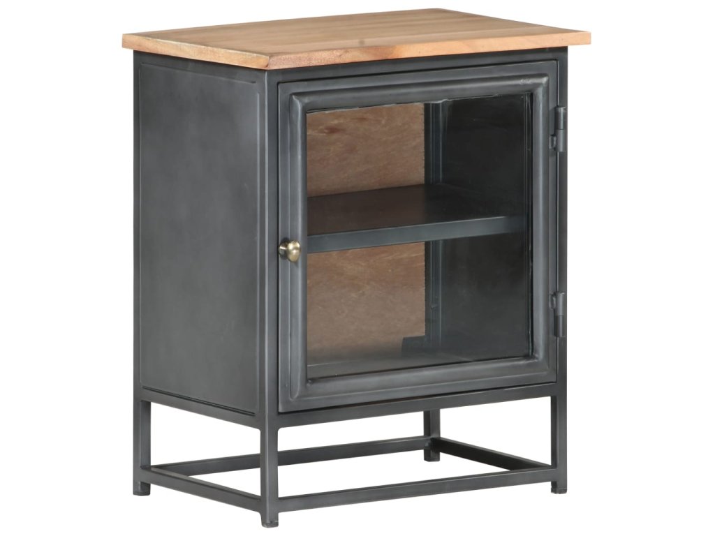 Nočný stolík je vyrobený z masívneho akáciového dreva, čo je tvrdé drevo s bohatou štruktúrou. Tento nočný stolík s krásnym dizajnom je stabilný, odolný a pútavý. Vďaka vynikajúcemu remeselnému spracovaniu a krásnej štruktúre dreva je každý kus trochu odlišný od ostatných kusov. Nočný stolík má pevnú vrchnú dosku, na ktorú môžete umiestniť svoje veci, ako je napríklad posteľná lampa. Okrem toho je priestor vo vnútri sklenených dverí dostatočne veľký na úhľadné usporiadanie poznámkových blokov, kníh a iných vecí.