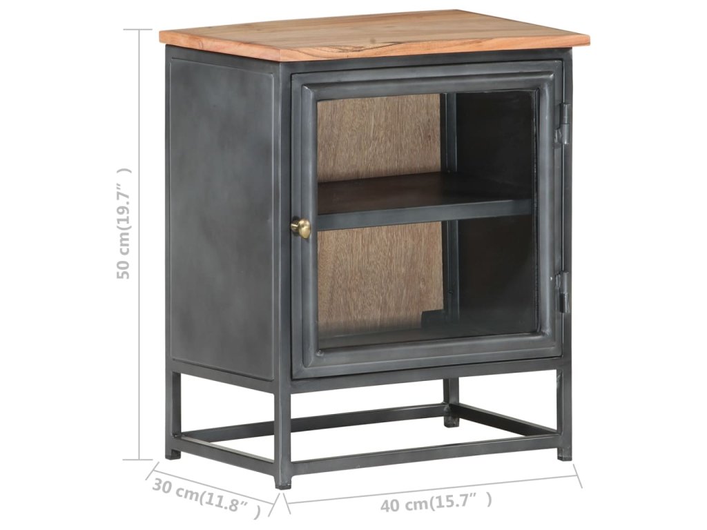 - Materiál: Masívne akáciové drevo, sklo, oceľ, železo