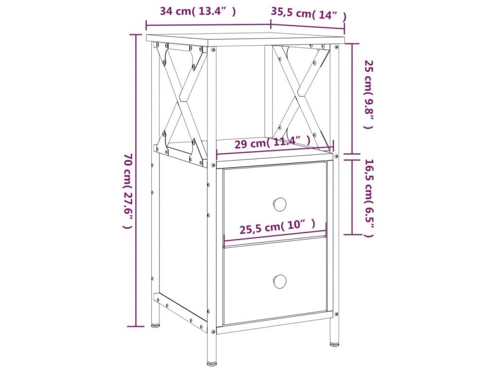 vidaXL Nočný stolík sivý sonoma 34x35,5x70 cm spracované drevo
