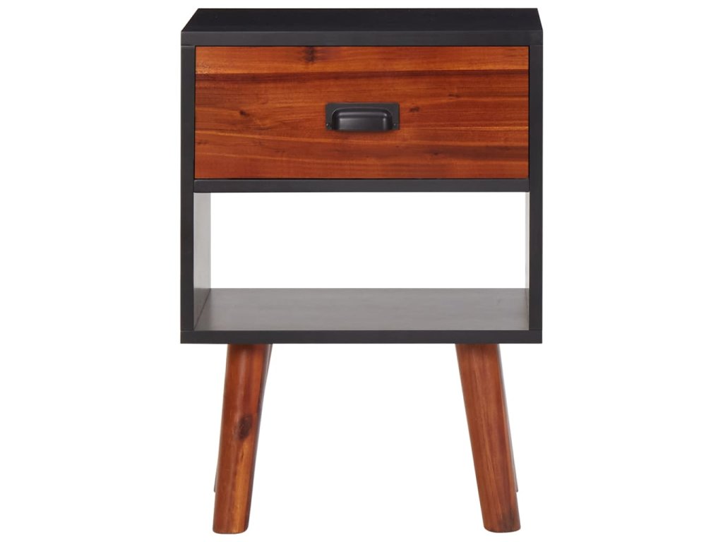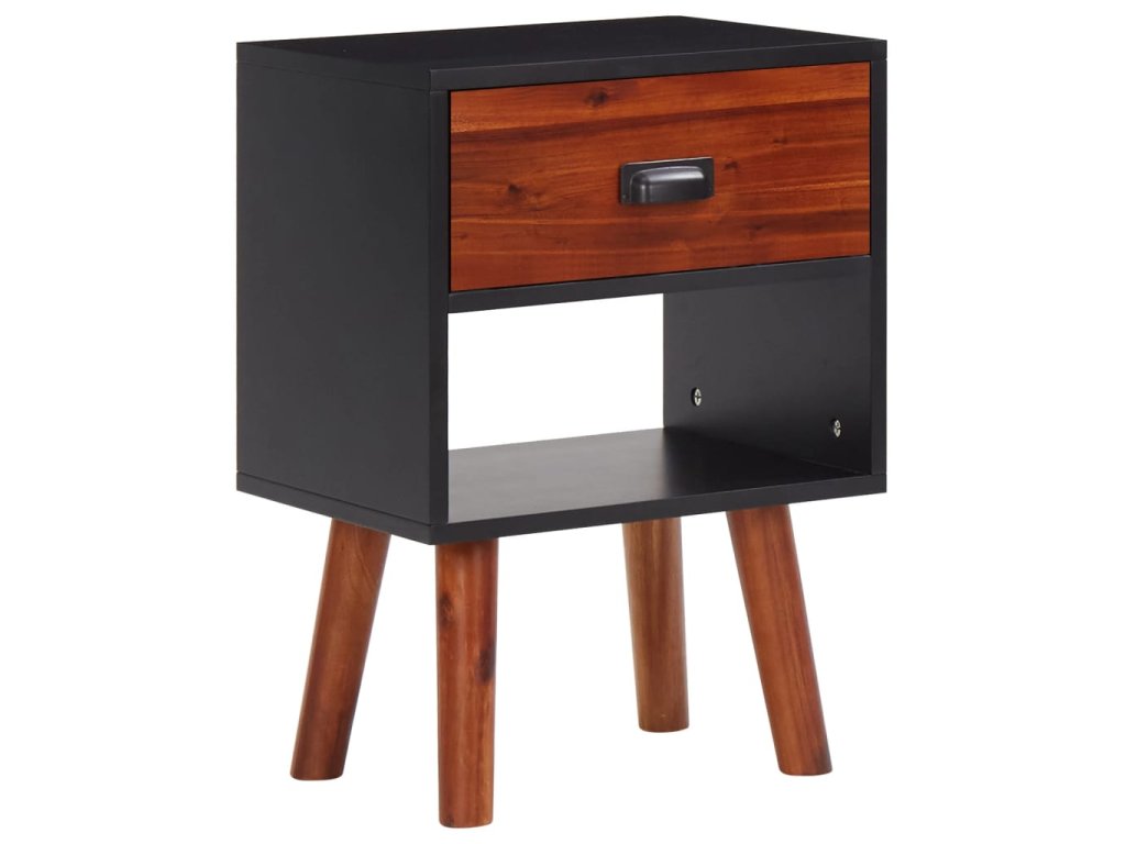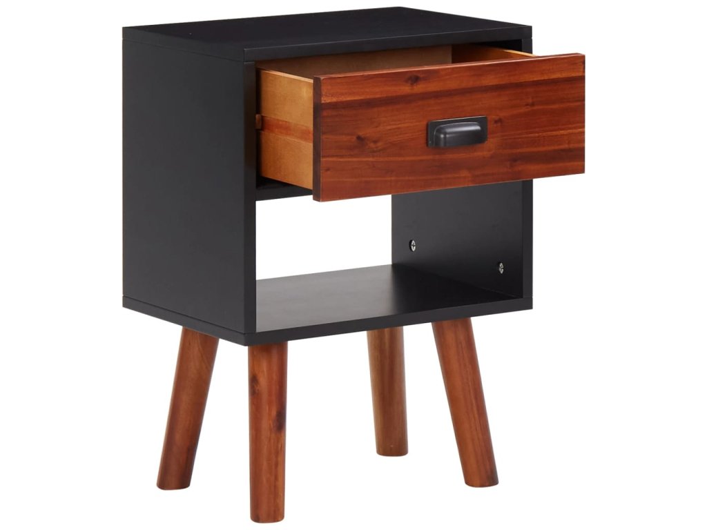 Tento nočný stolík je odborne vyrobený z akáciového dreva a vysokokvalitného MDF, preto je veľmi odolný a trvácny. Kompaktná skrinka má zásuvku, ktorá sa hladko zasúva a vysúva a poskytuje veľa priestoru na uloženie malých položiek. Odteraz budú upratané a na dosah ruky. Polička pod zásuvkou poskytne dodatočné úložné miesto.