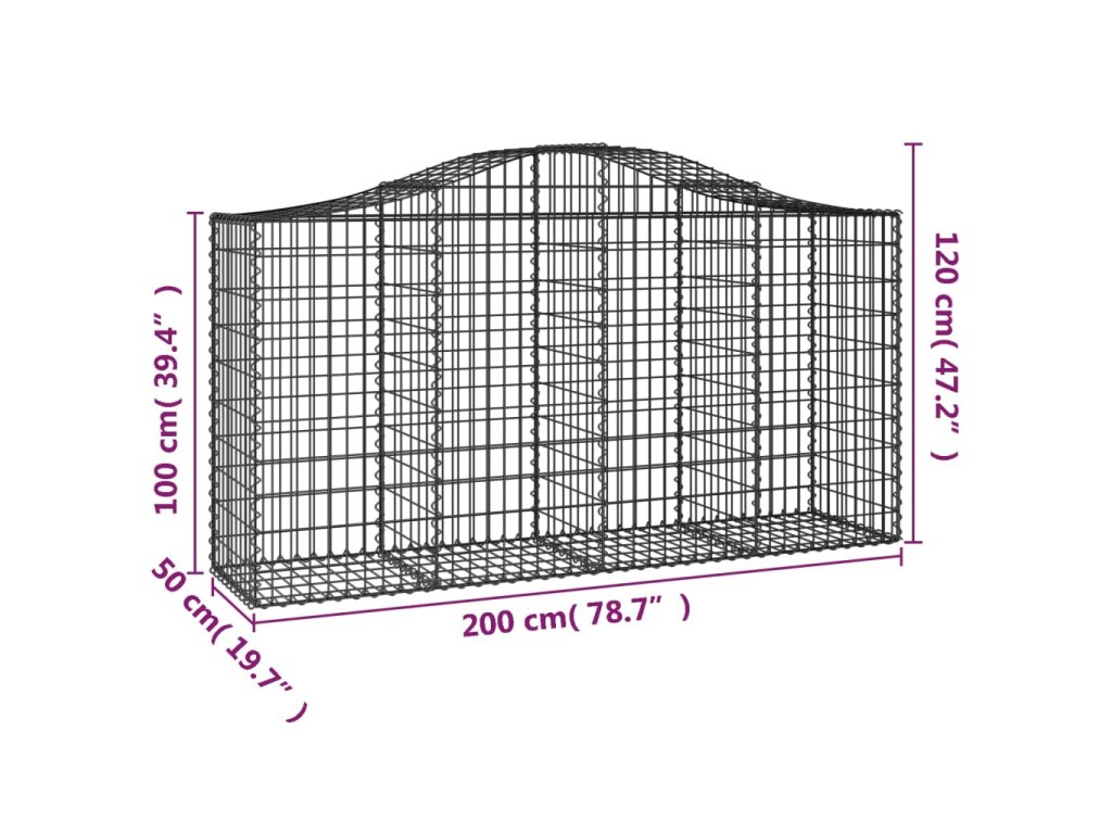 vidaXL Oblúkové gabiónové koše 2ks 200x50x100/120cm pozinkované železo
