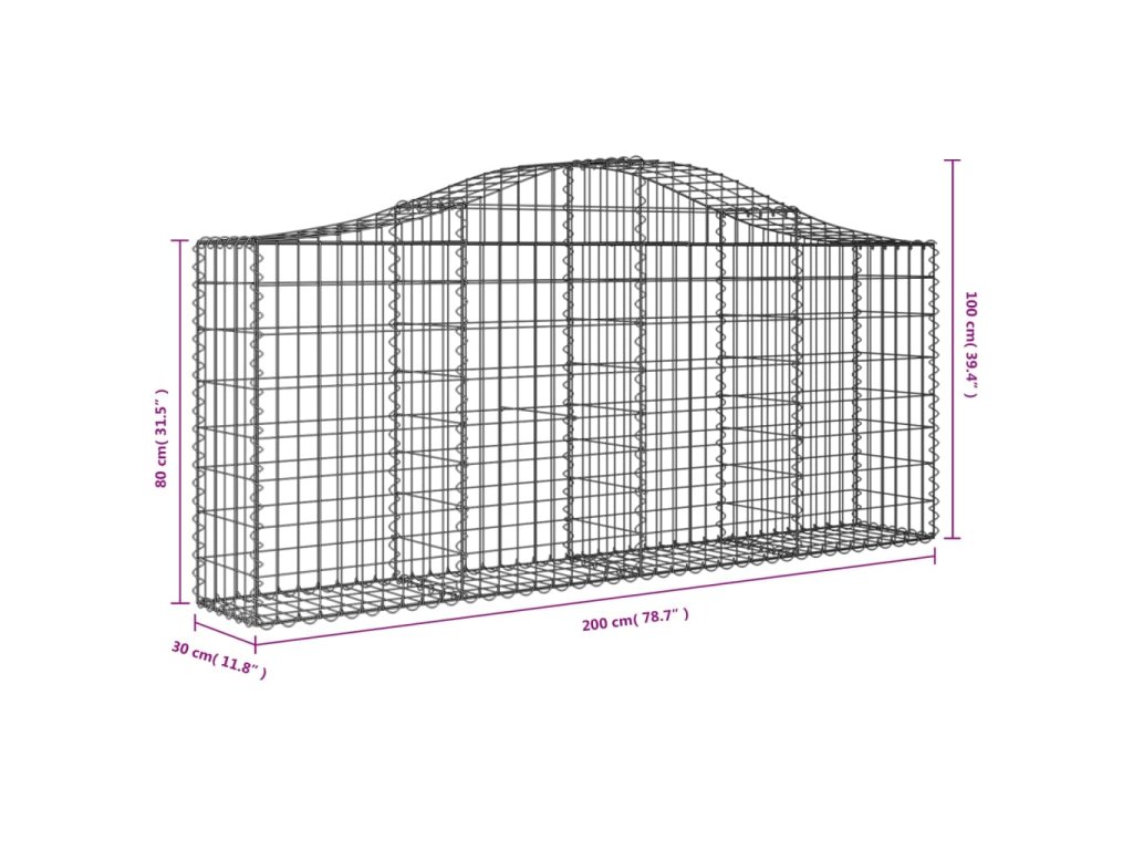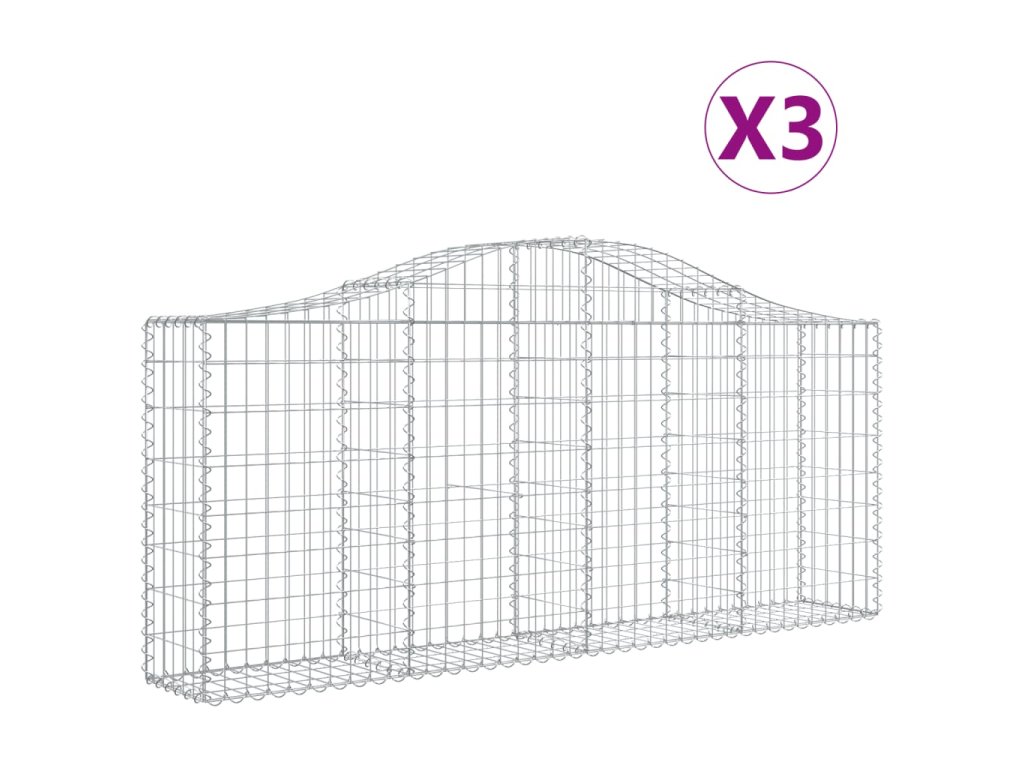 vidaXL Oblúkové gabionové koše 3 ks 200x30x80/100cm pozinkované železo