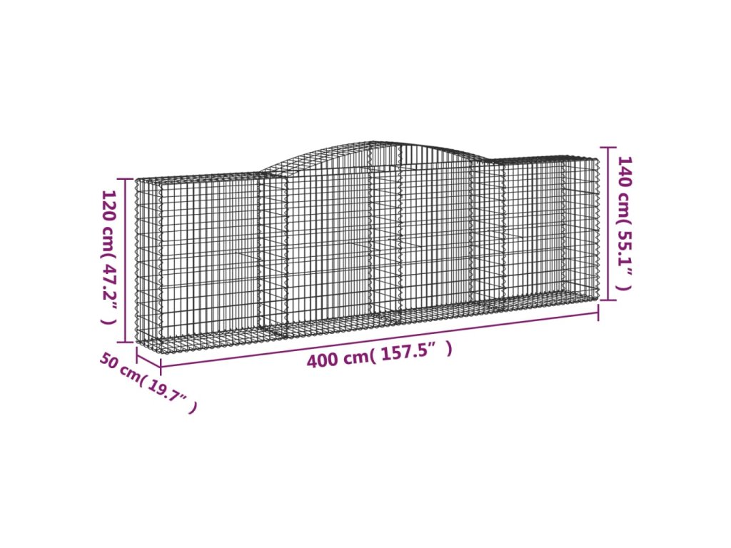 vidaXL Oblúkové gabionové koše 3 ks 400x50x120/140 cm pozink. železo