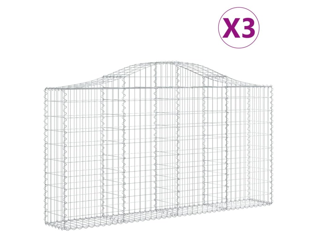 vidaXL Oblúkové gabiónové koše 3ks 200x30x100/120cm pozinkované železo