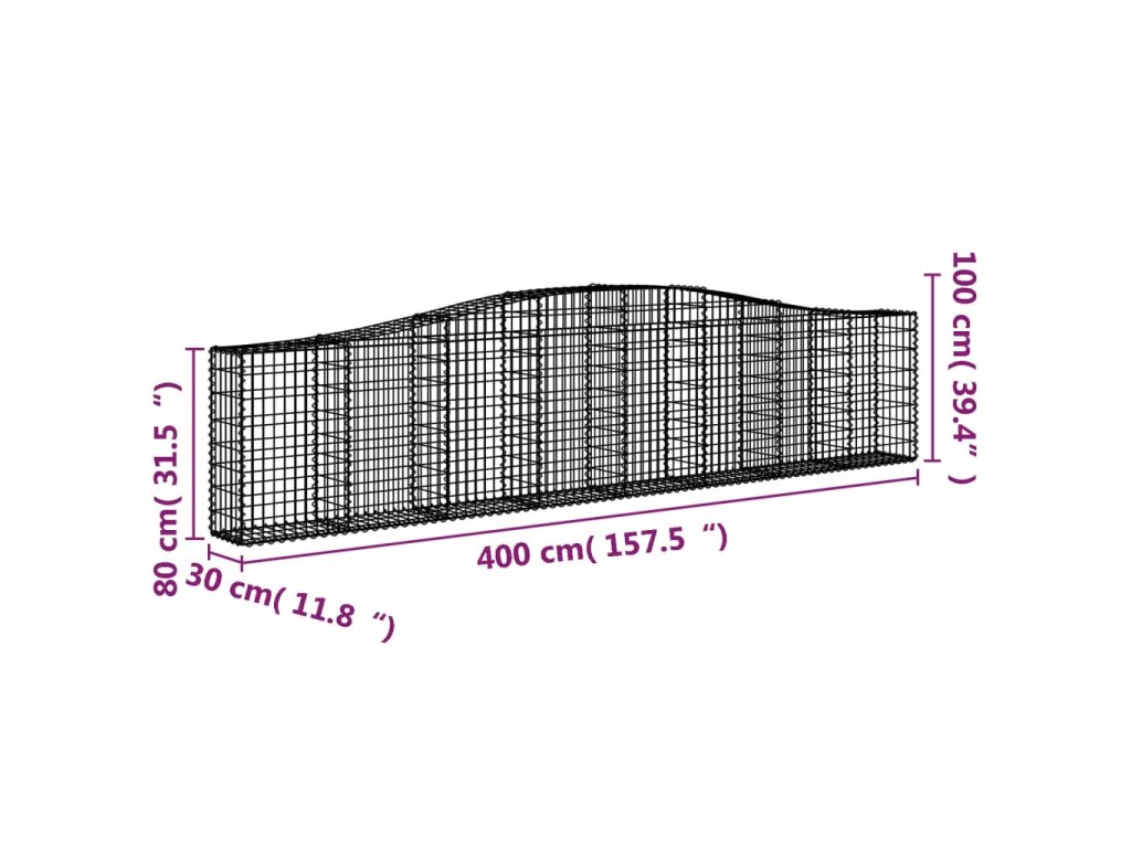 vidaXL Oblúkové gabionové koše 4 ks 400x30x80/100cm pozinkované železo
