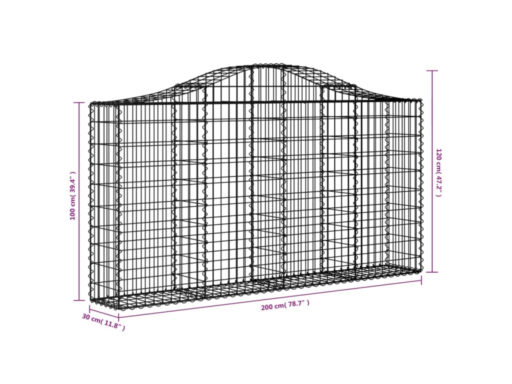 vidaXL Oblúkové gabiónové koše 6ks 200x30x100/120cm pozinkované železo