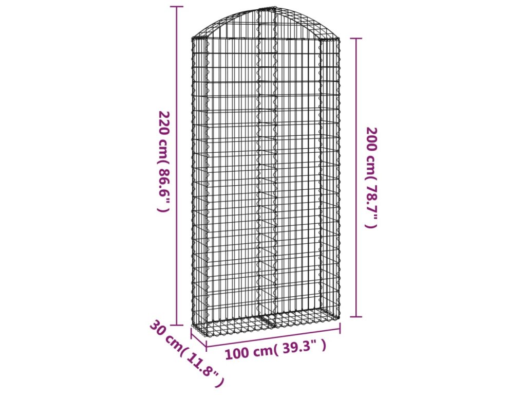vidaXL Oblúkový gabionový kôš 100x30x200/220 cm pozinkované železo