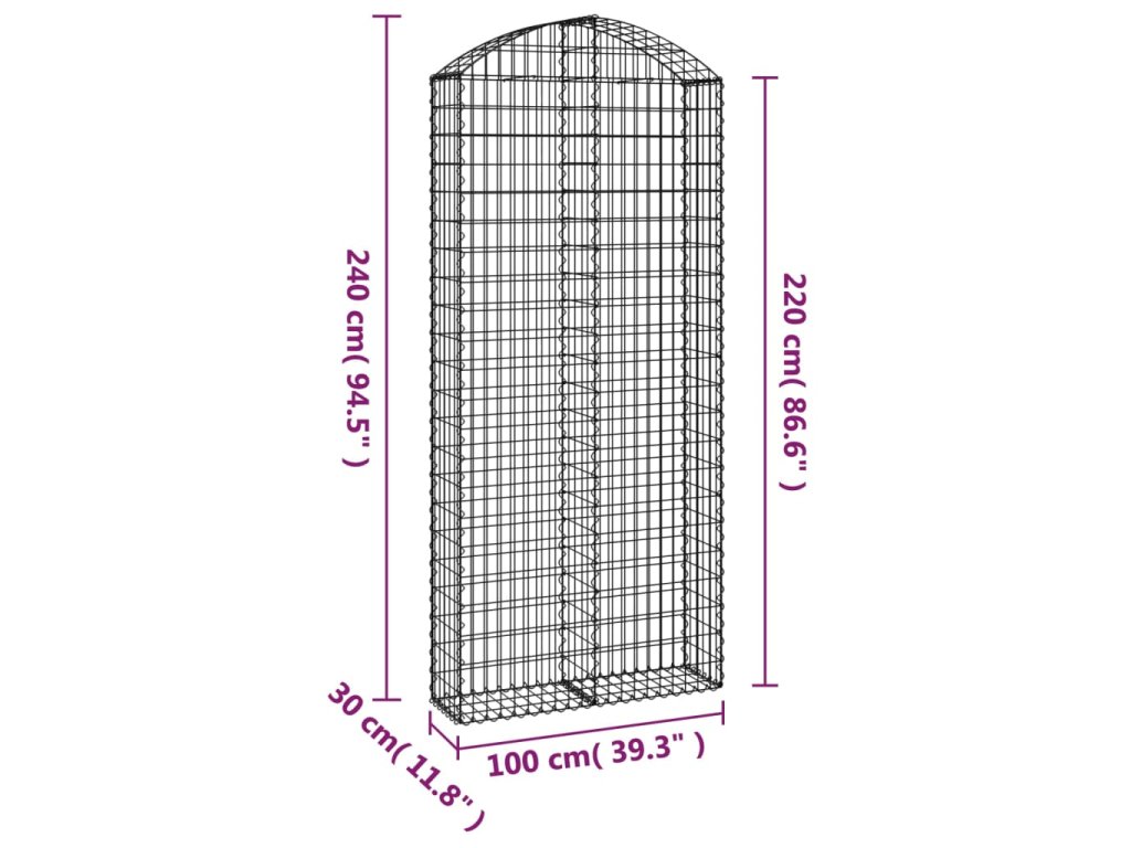 vidaXL Oblúkový gabionový kôš 100x30x220/240 cm pozinkované železo