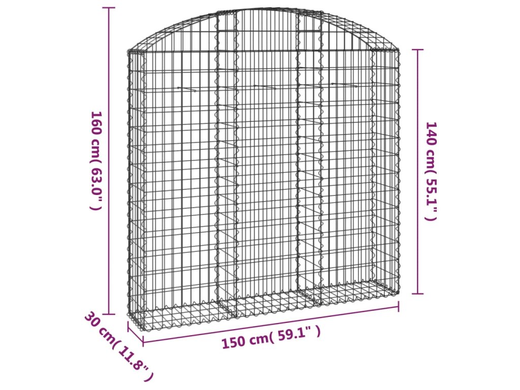 vidaXL Oblúkový gabionový kôš 150x30x140/160 cm pozinkované železo