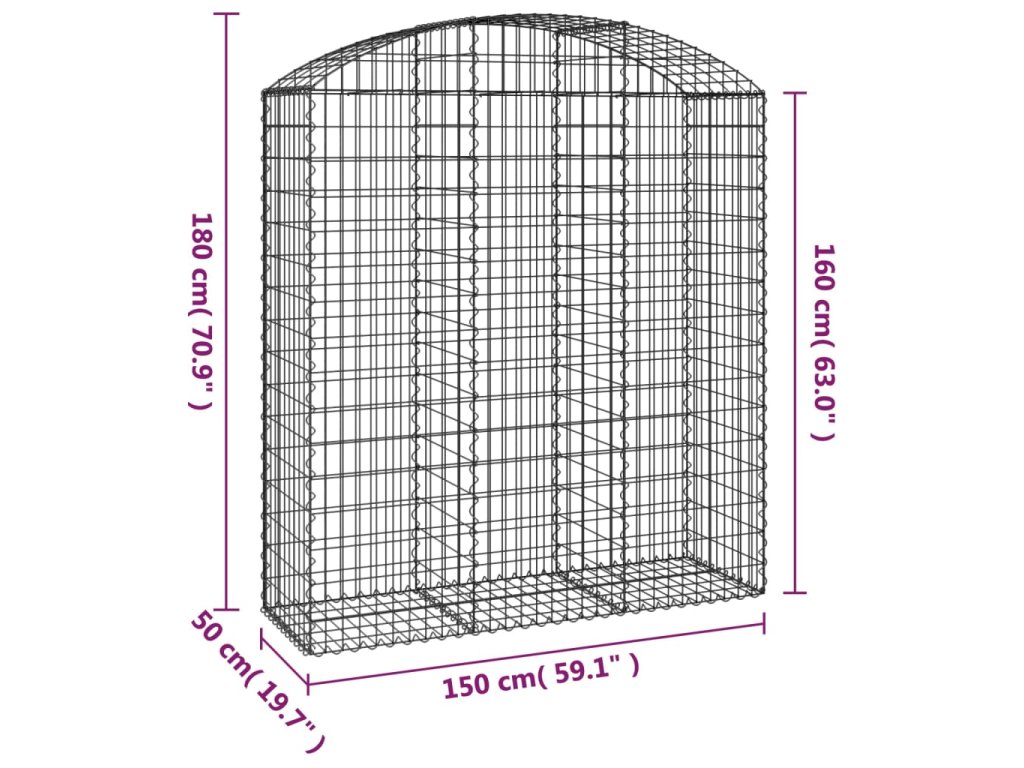 vidaXL Oblúkový gabionový kôš 150x50x160/180 cm pozinkované železo