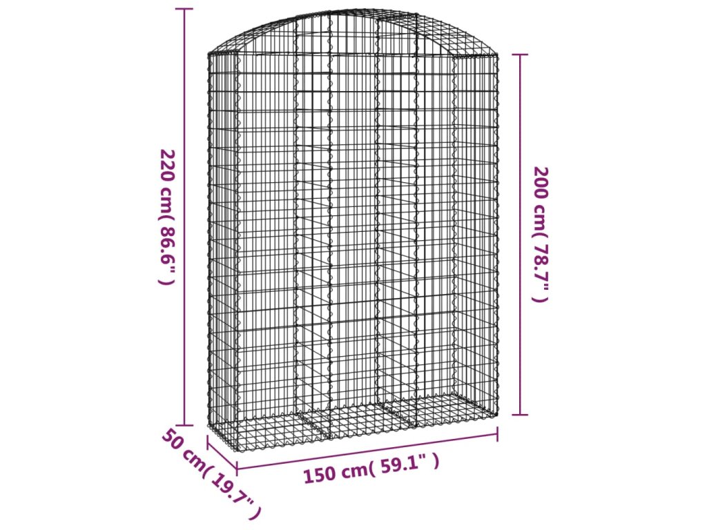 vidaXL Oblúkový gabionový kôš 150x50x200/220 cm pozinkované železo