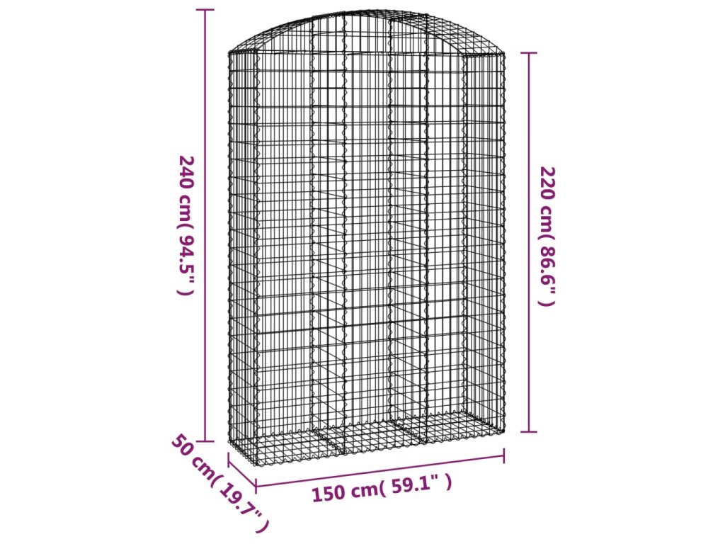 vidaXL Oblúkový gabionový kôš 150x50x220/240 cm pozinkované železo